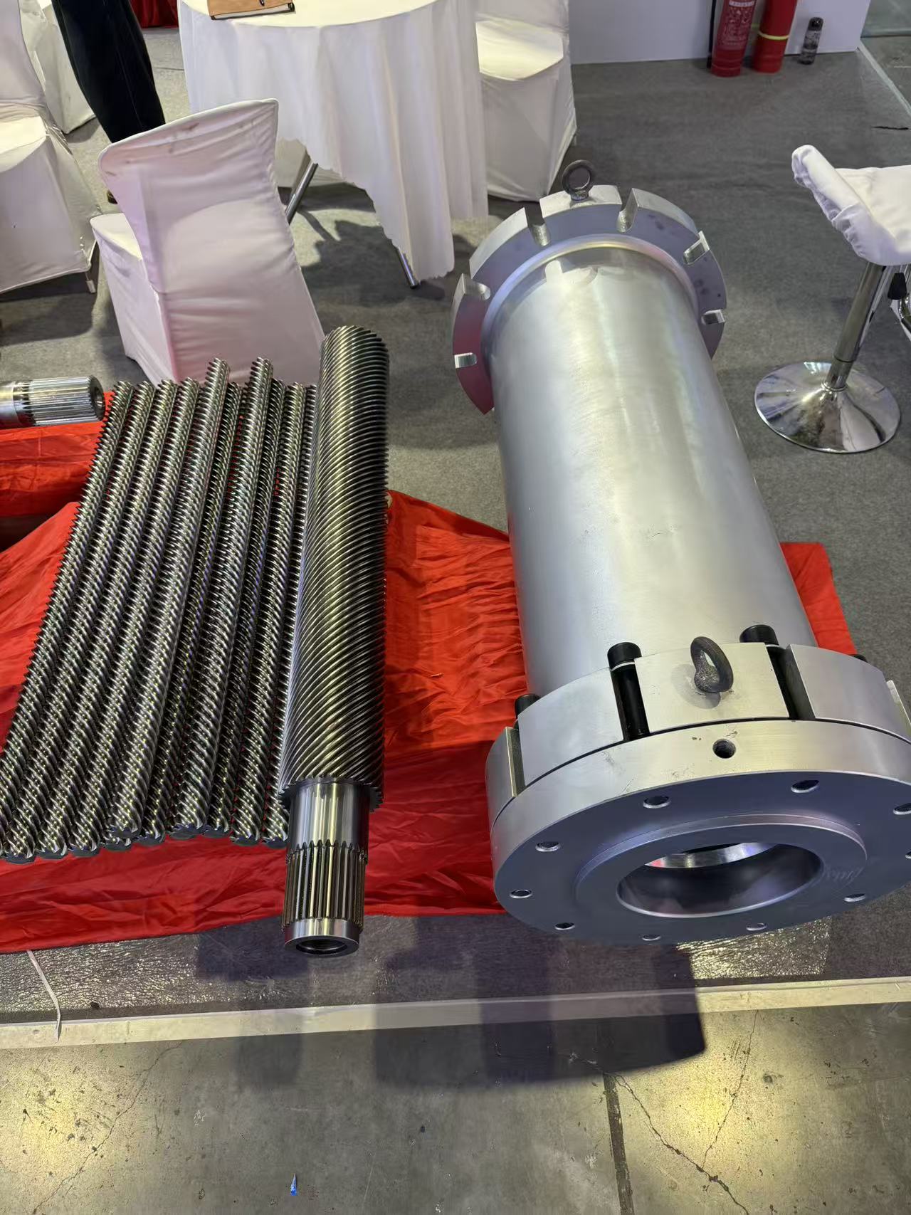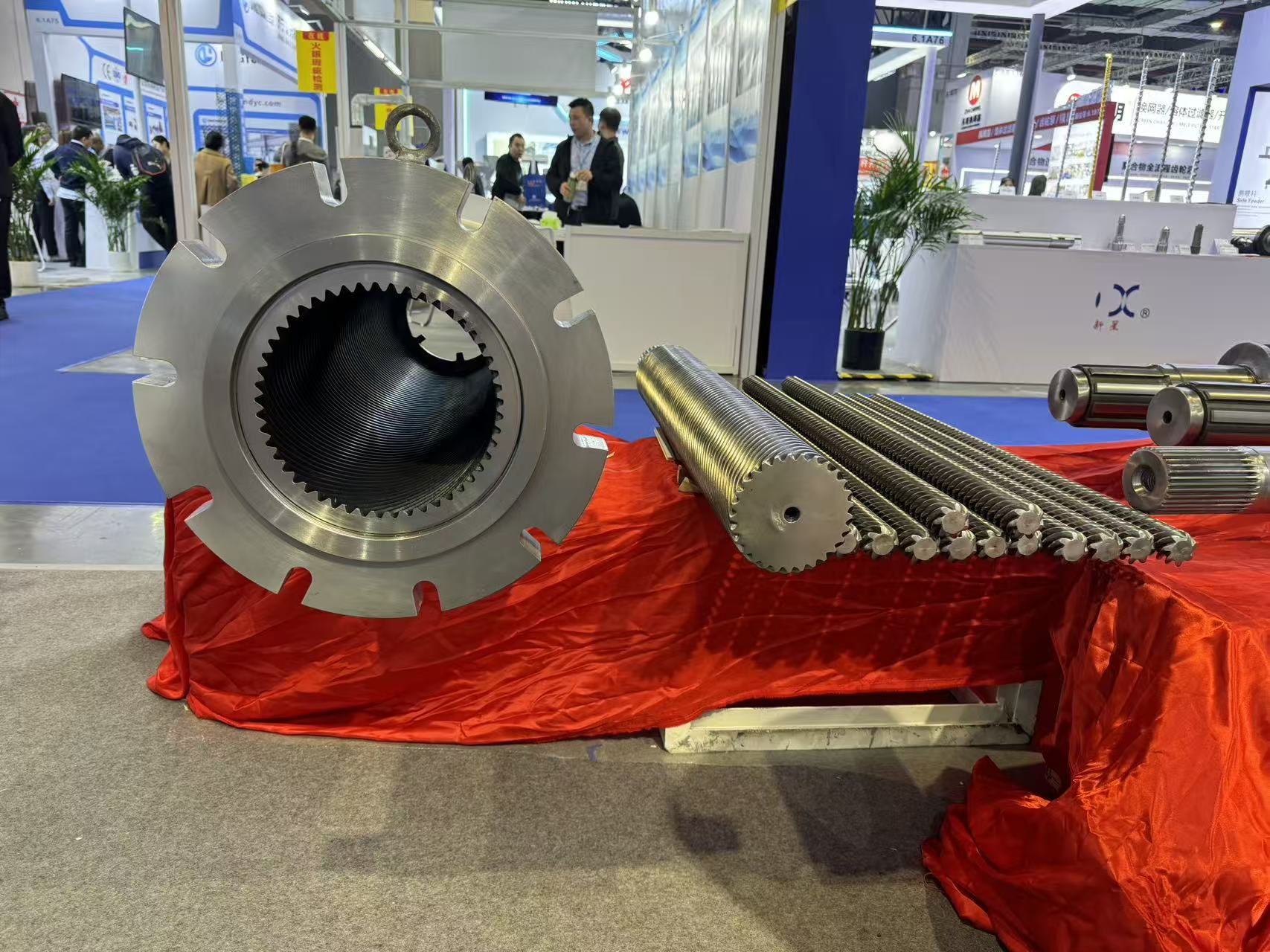 Ang mga bahagi ng planetary extruder ng kumpanya ay isang highlight ng eksibisyon. Ang kanilang natatanging panloob na gear at panlabas na gear ring structure na disenyo ay nagbibigay-daan sa mataas na intensidad na paggugupit at paghahalo ng mga polymer na materyales, na nagreresulta sa mas pare-parehong pag-init at makabuluhang pinabuting plasticizing.
